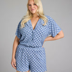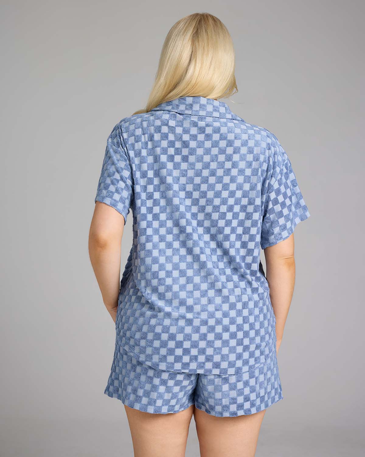 Introducing the Azzura Set, a charming ensemble that combines comfort and style with a touch of nostalgia. Crafted from a checkered blue crochet fabric, this set features a trendy button-down top and matching shorts. Embrace the playful and feminine vibes of the Azzura Set and make a statement wherever you go.