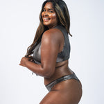 Sporty, spicy & stunning. The Brooke top is an exciting twist on coverage and support. With a front tie and racer back, the Brooke top is unlike other full coverage tops.