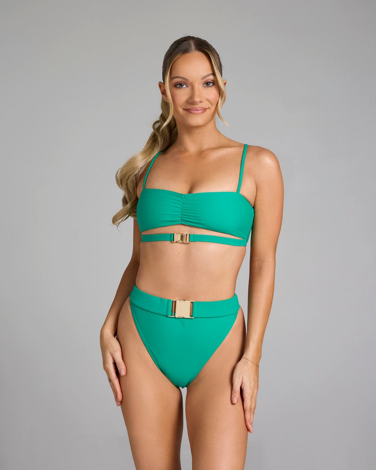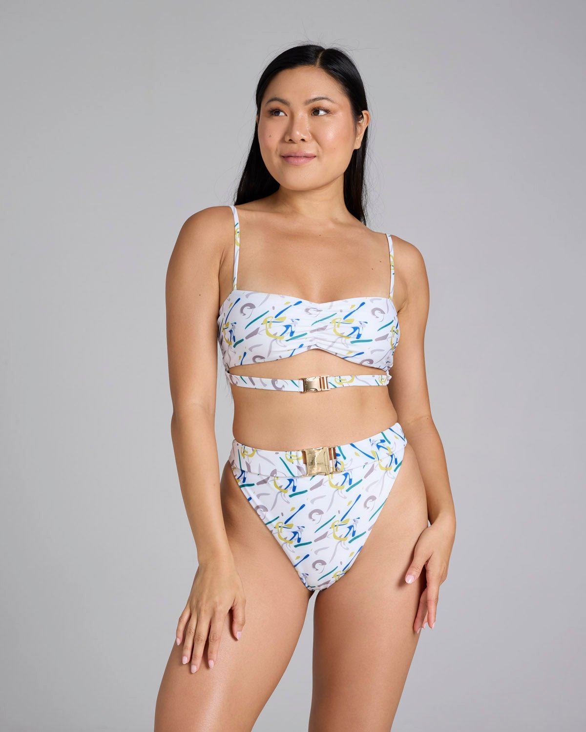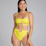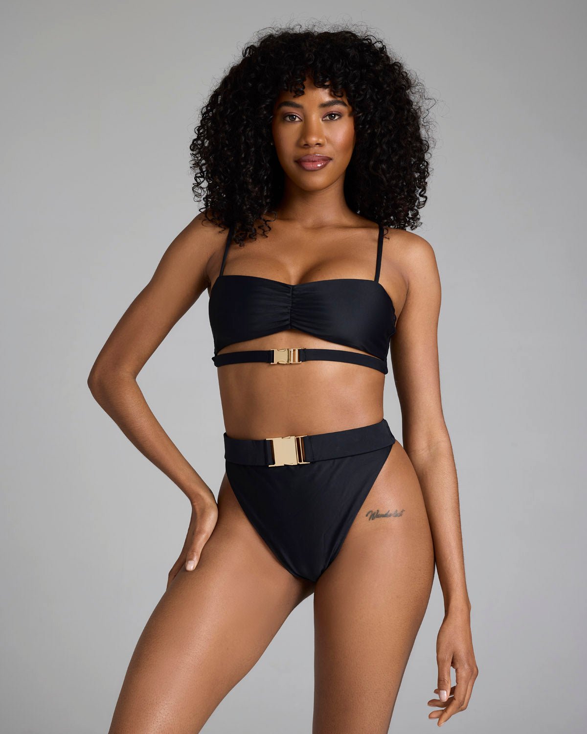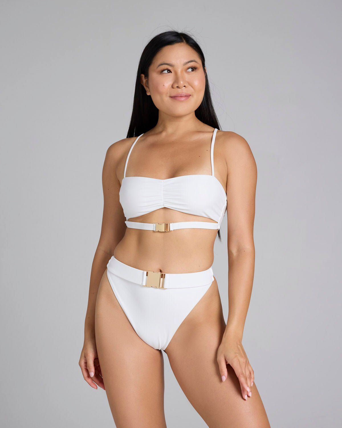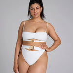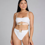 Get ready for a day in the sun with the Danielle bikini bottom from Axil Swim! Featuring an eco-friendly, buttery Italian fabric, this high waisted thong is as elegant and classy as they come. The band and buckle detail adds a touch of flair that is perfect for both your yacht and pool parties.
