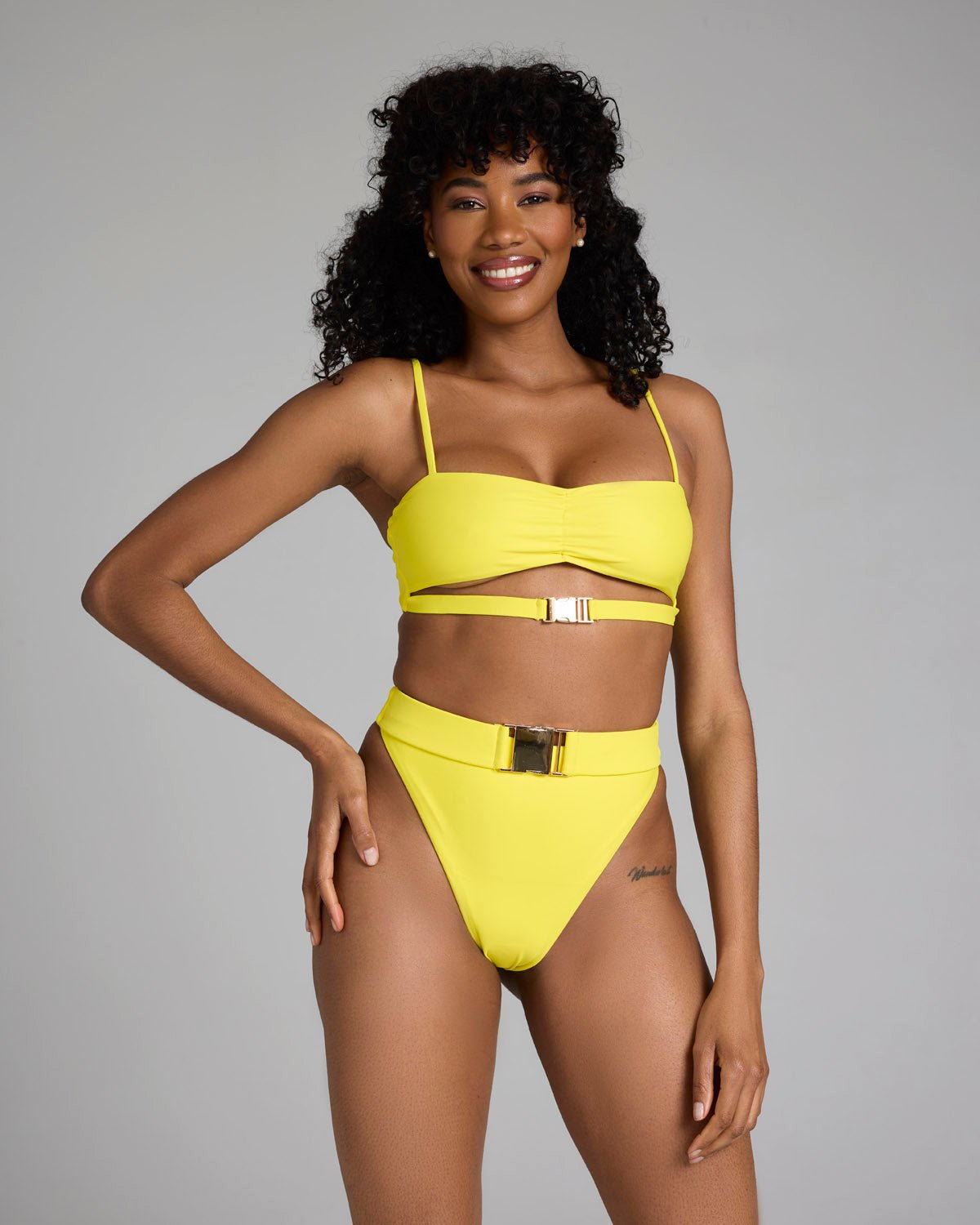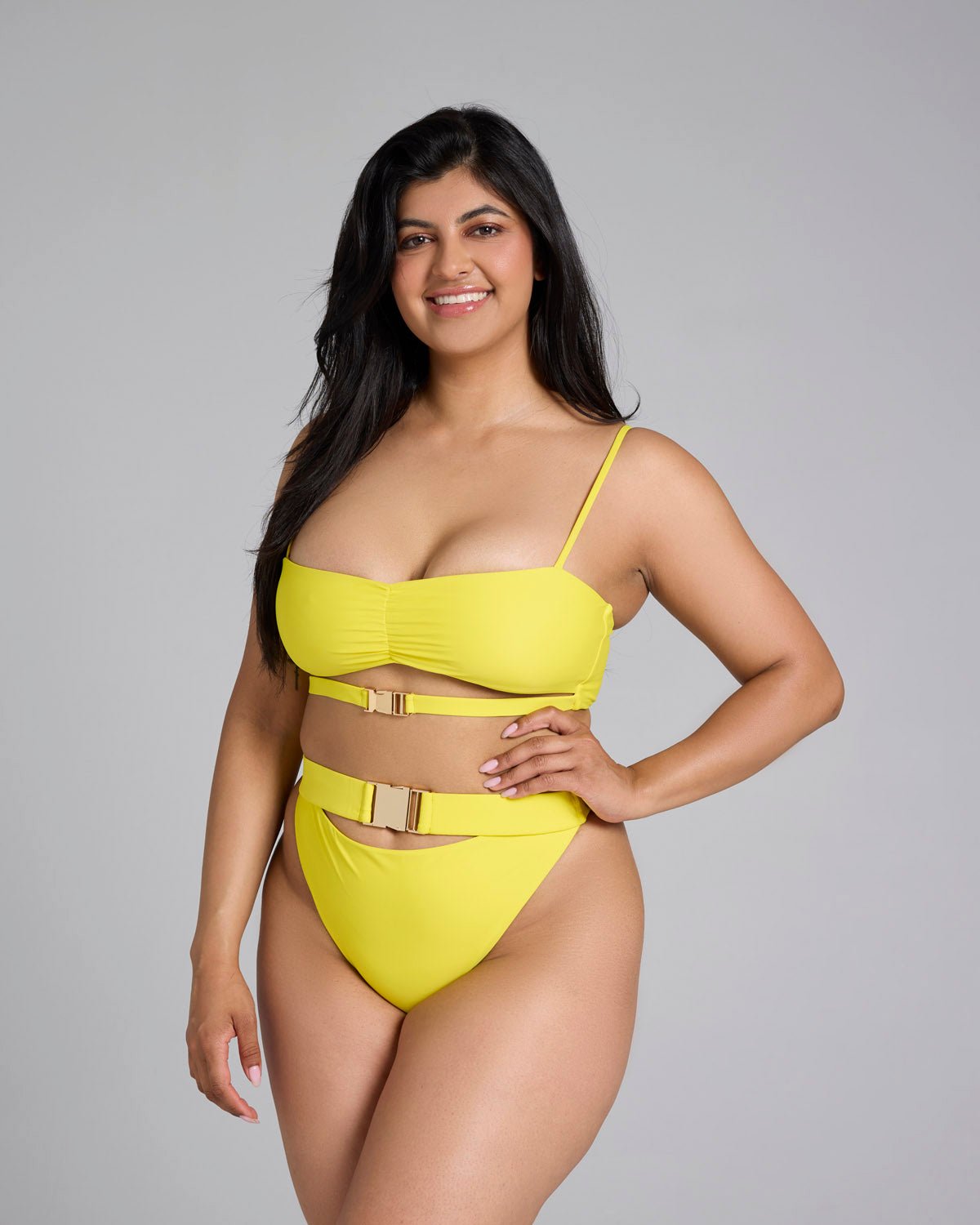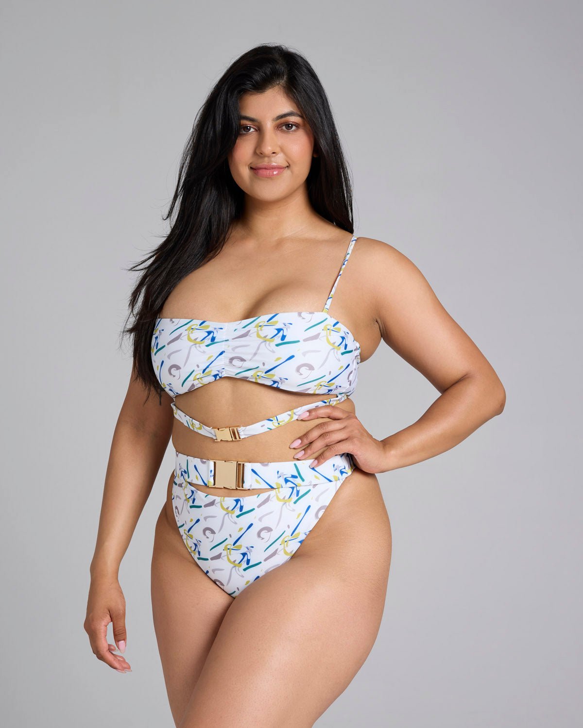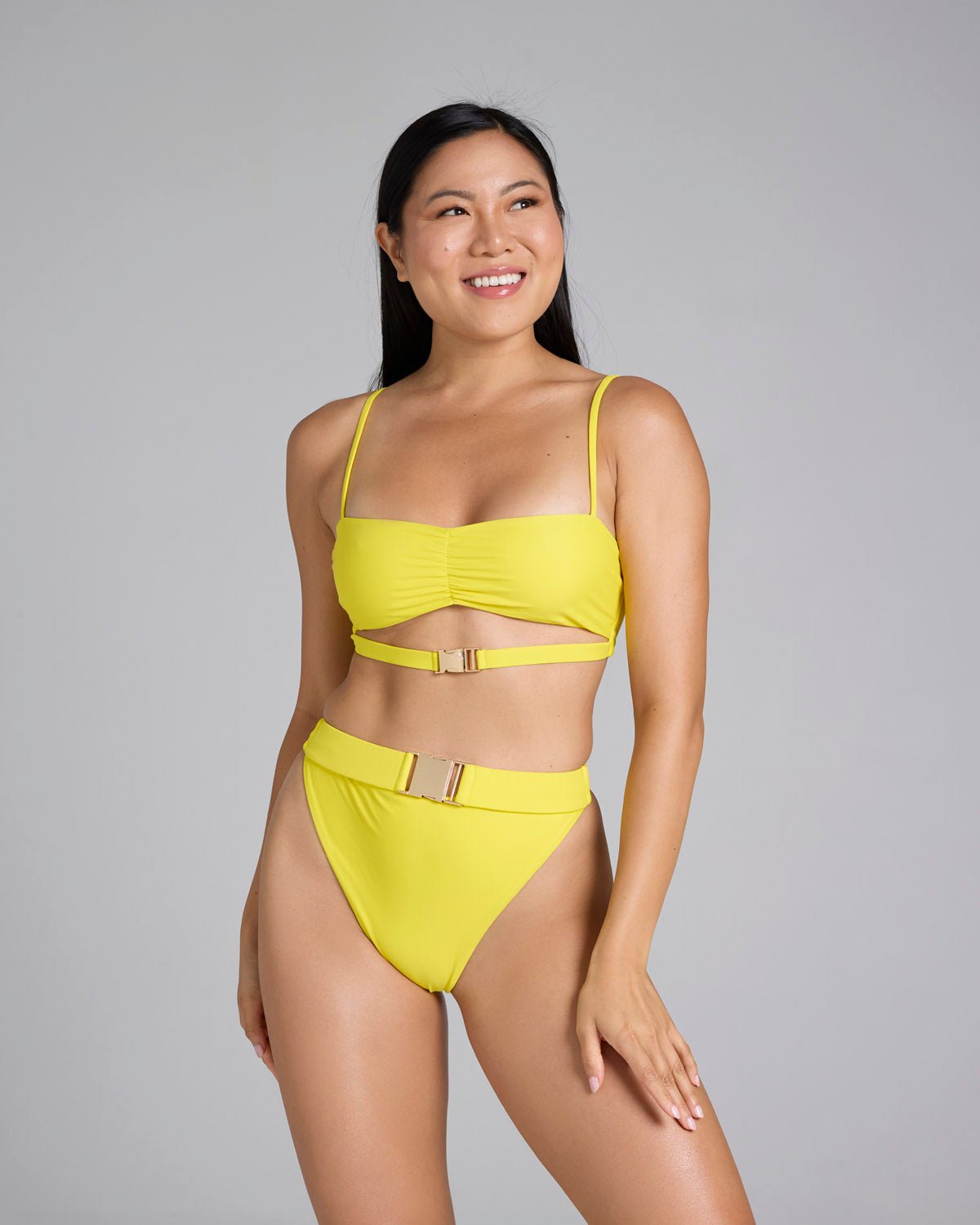 Get ready for a day in the sun with the Danielle bikini bottom from Axil Swim! Featuring an eco-friendly, buttery Italian fabric, this high waisted thong is as elegant and classy as they come. The band and buckle detail adds a touch of flair that is perfect for both your yacht and pool parties.