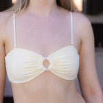 Get ready to shine this summer with the Gabi bikini top from Axil Swim. Crafted from eco-friendly Italian fabric, this piece offers a buttery-soft feel and unbeatable comfort that's perfect for any beach getaway! Featuring a strapless design and an iridescent center o-ring for added style, you'll be creating a chic and eye-catching look in no time! Let your style shine through with the Gabi bikini top!