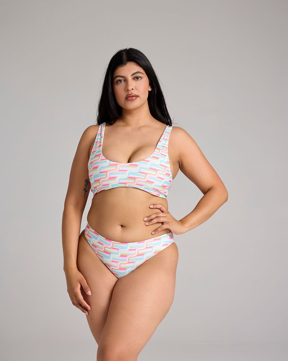 Get the top of your dreams with the Megan top from Axil Swim's Retrograde collection! Crafted from luxurious and eco-friendly Italian fabric, this adjustable top provides full coverage without sacrificing the style. With an adjustable fit that'll hug your curves just right, you can feel both sporty yet flirty in the Megan top. And for those days when you're feeling extra active, the supportive straps make sure you stay comfortable while still looking chic. No matter what you have planned, dress to impress with this gorgeous and supportive swimsuit top!