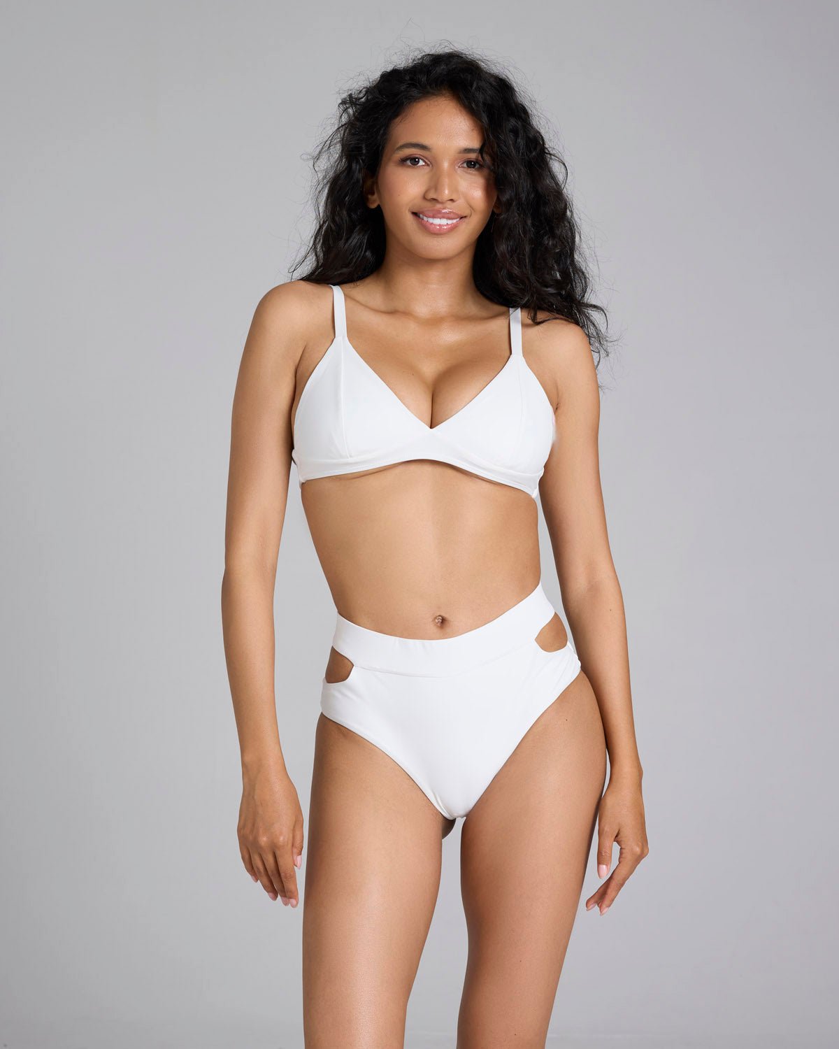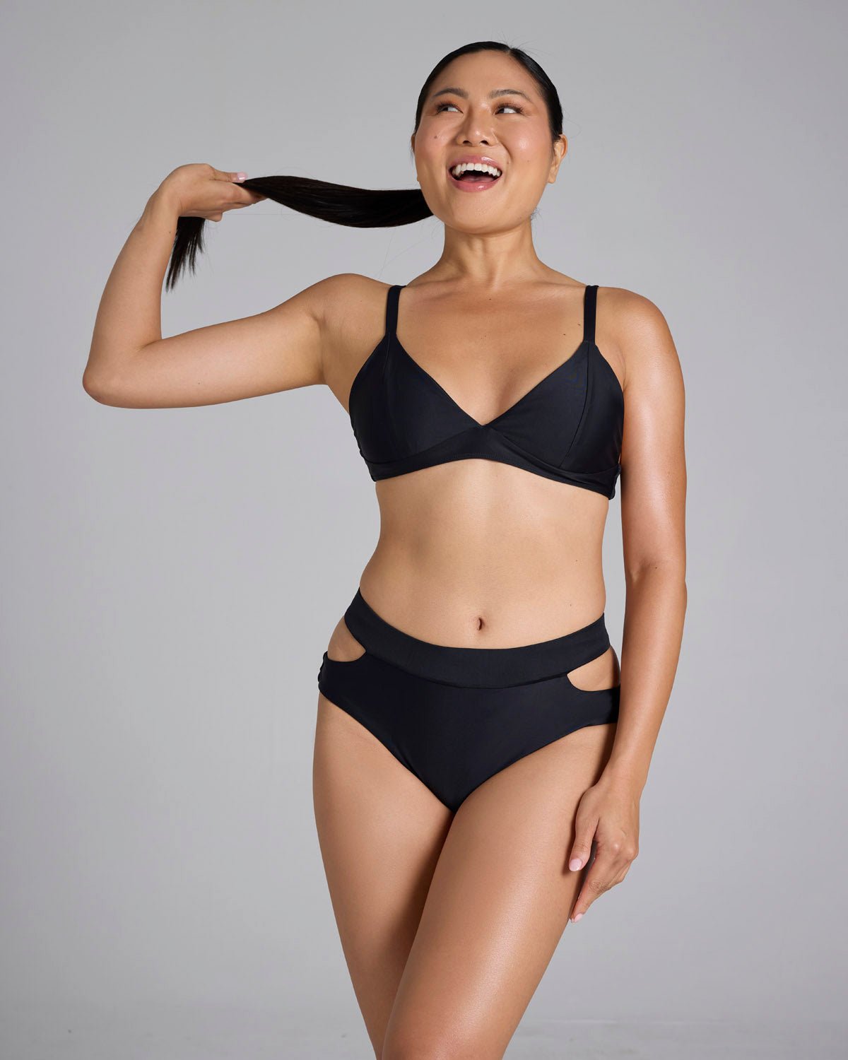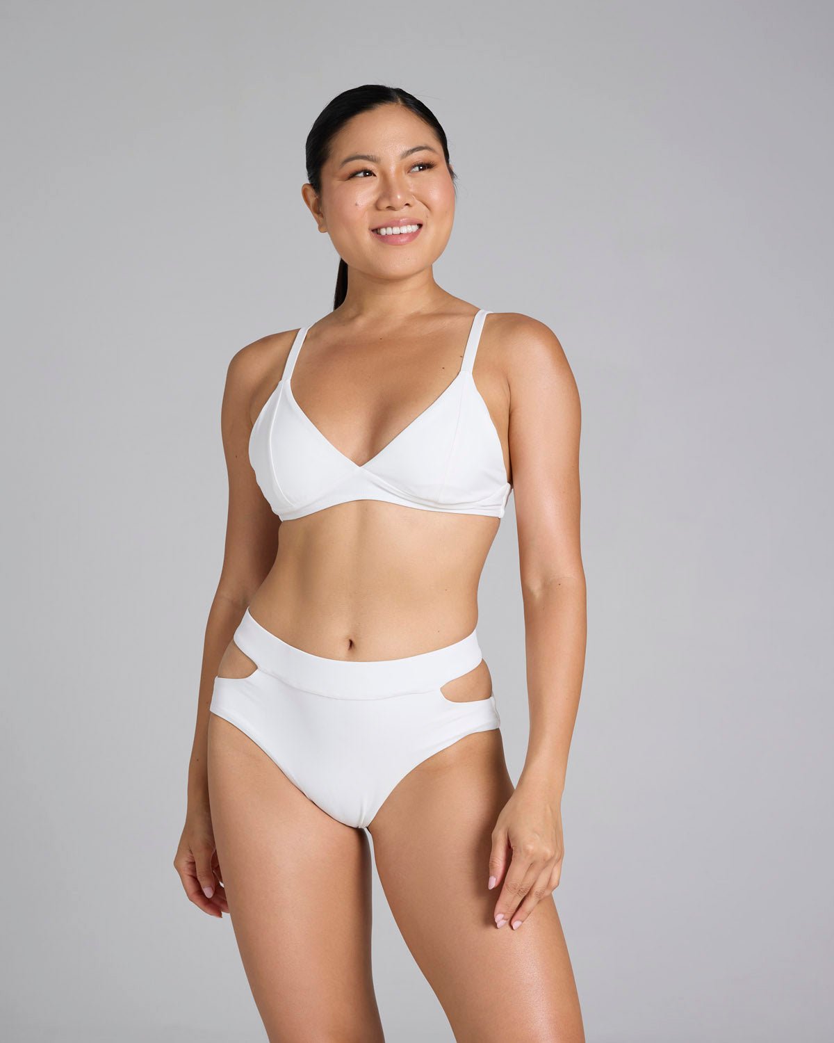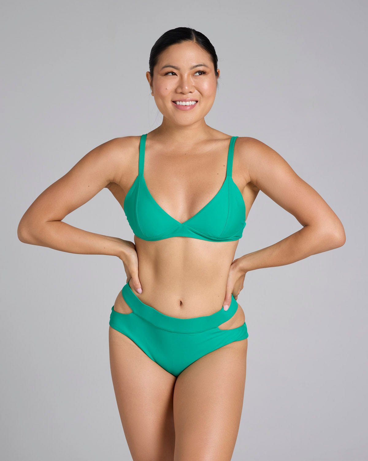 Add a touch of class to any beach look with the Molly bikini top from Axil Swim's Up to Par collection. This supportive triangle cut top is crafted from eco-friendly Italian fabric for a buttery, luxurious feel. Get the perfect balance of classy and flirty with the Molly top!