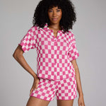 Introducing the Natalia Set, a charming ensemble that combines comfort and style with a touch of nostalgia. Crafted from a checkered pink crochet fabric, this set features a trendy button-down top and matching shorts. Embrace the playful and feminine vibes of the Natalia Set and make a statement wherever you go. Whether you're strolling along the beach or enjoying a summer picnic, this set is perfect for those who want to exude effortless charm. Step into the season with confidence and embrace the timeless allure of the Natalia Set
