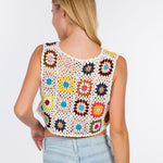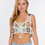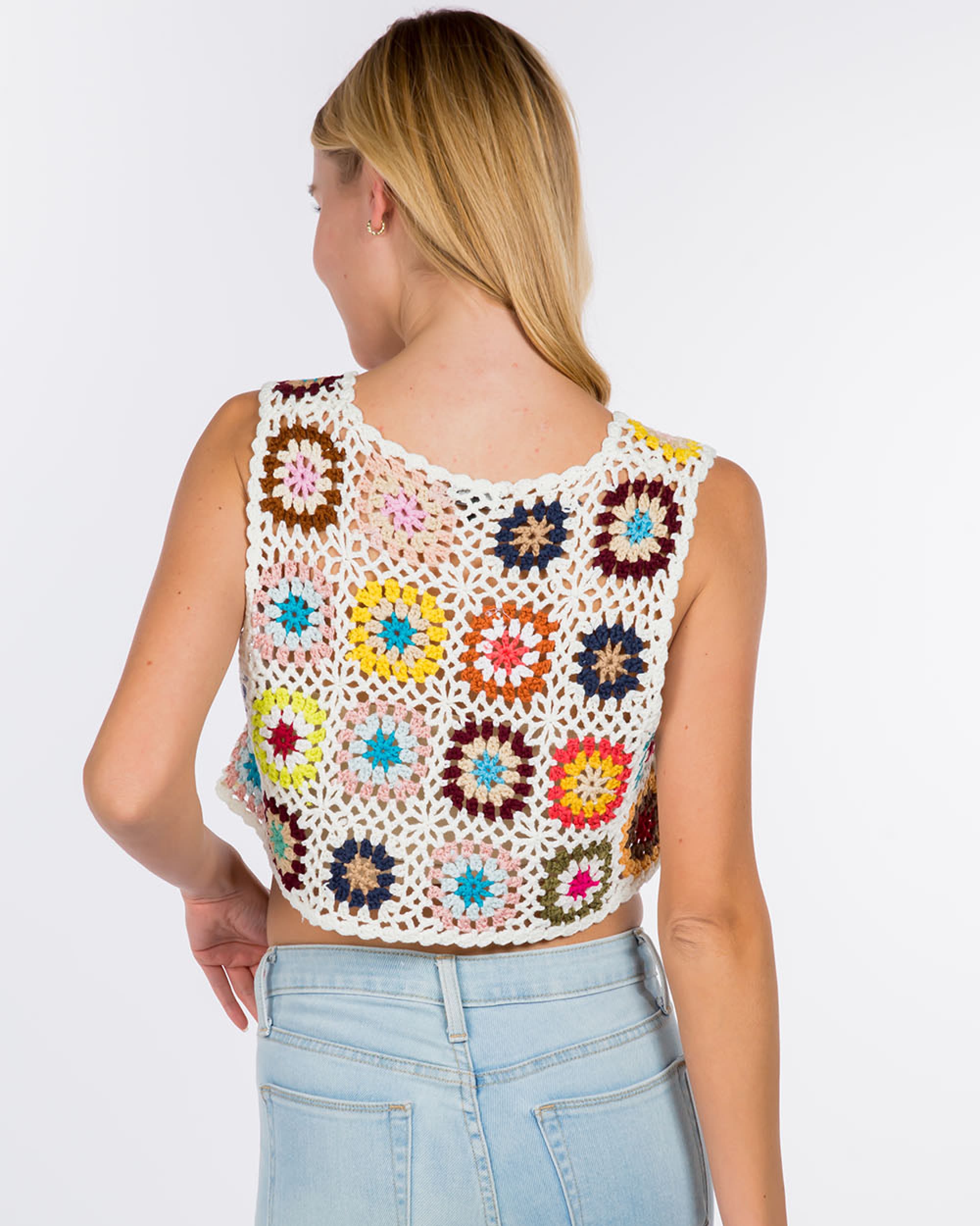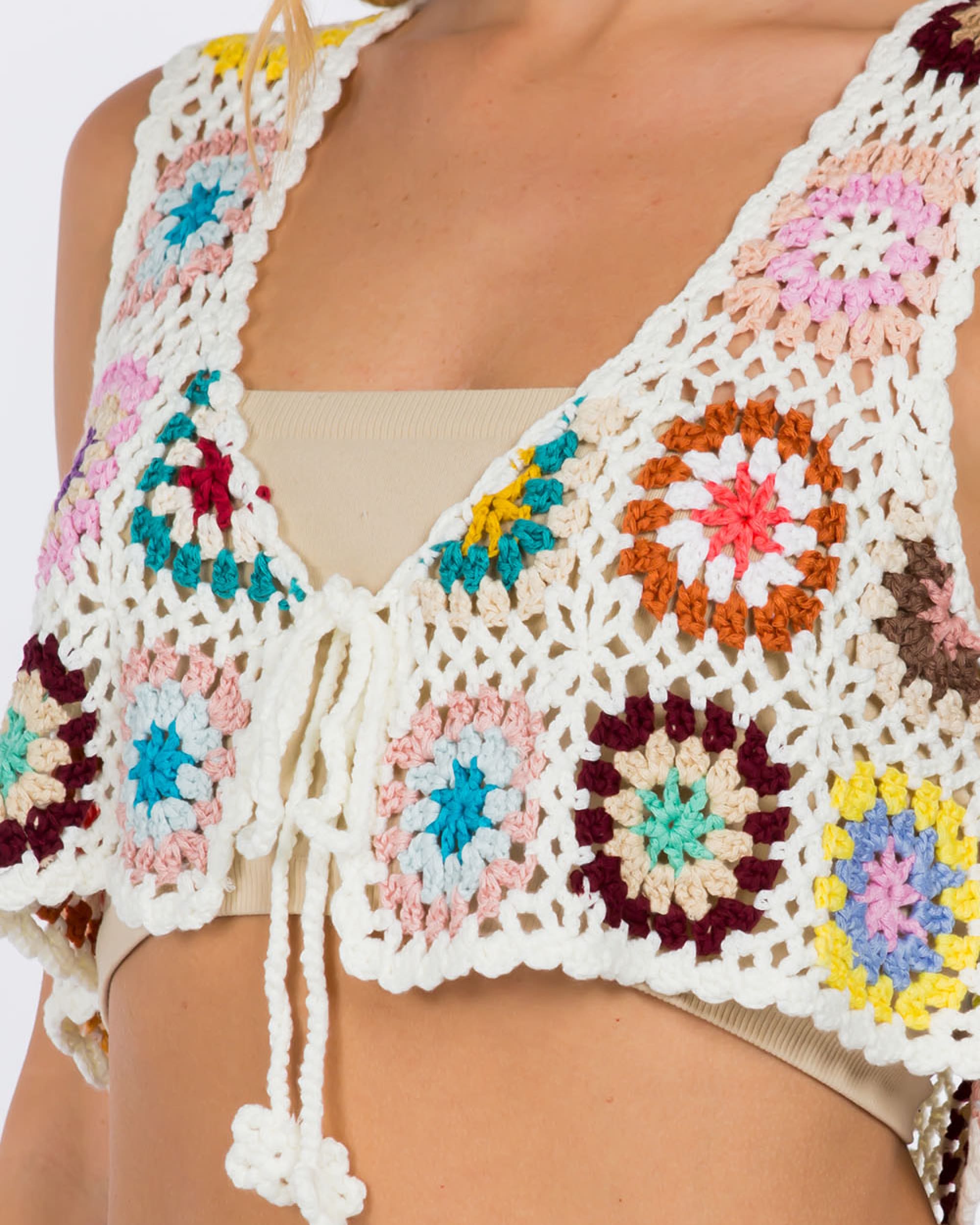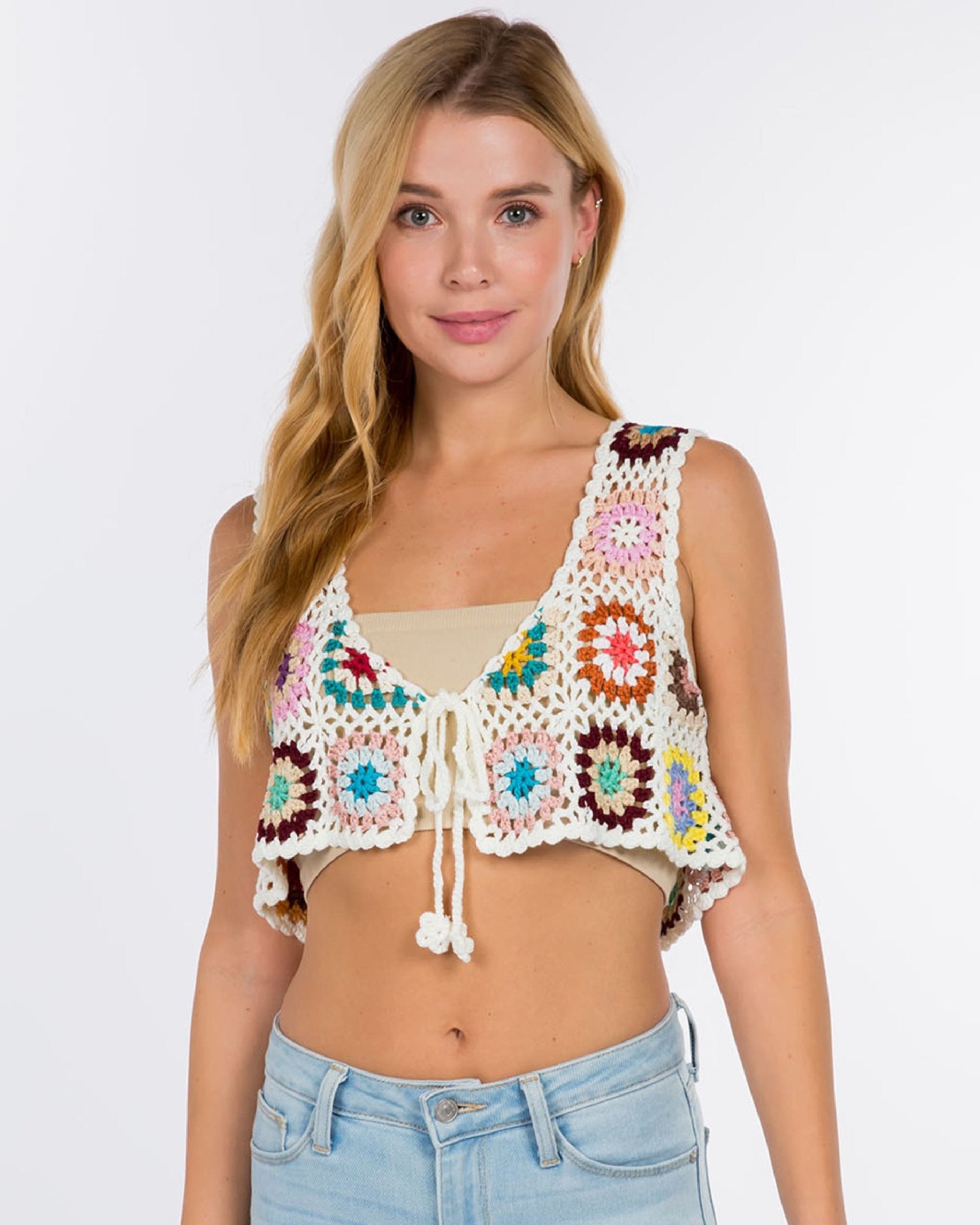 Our multi-colored crochet vest is a vibrant addition to any beach day ensemble. Wear it to the beach, the pool, or to lunch with your friends!