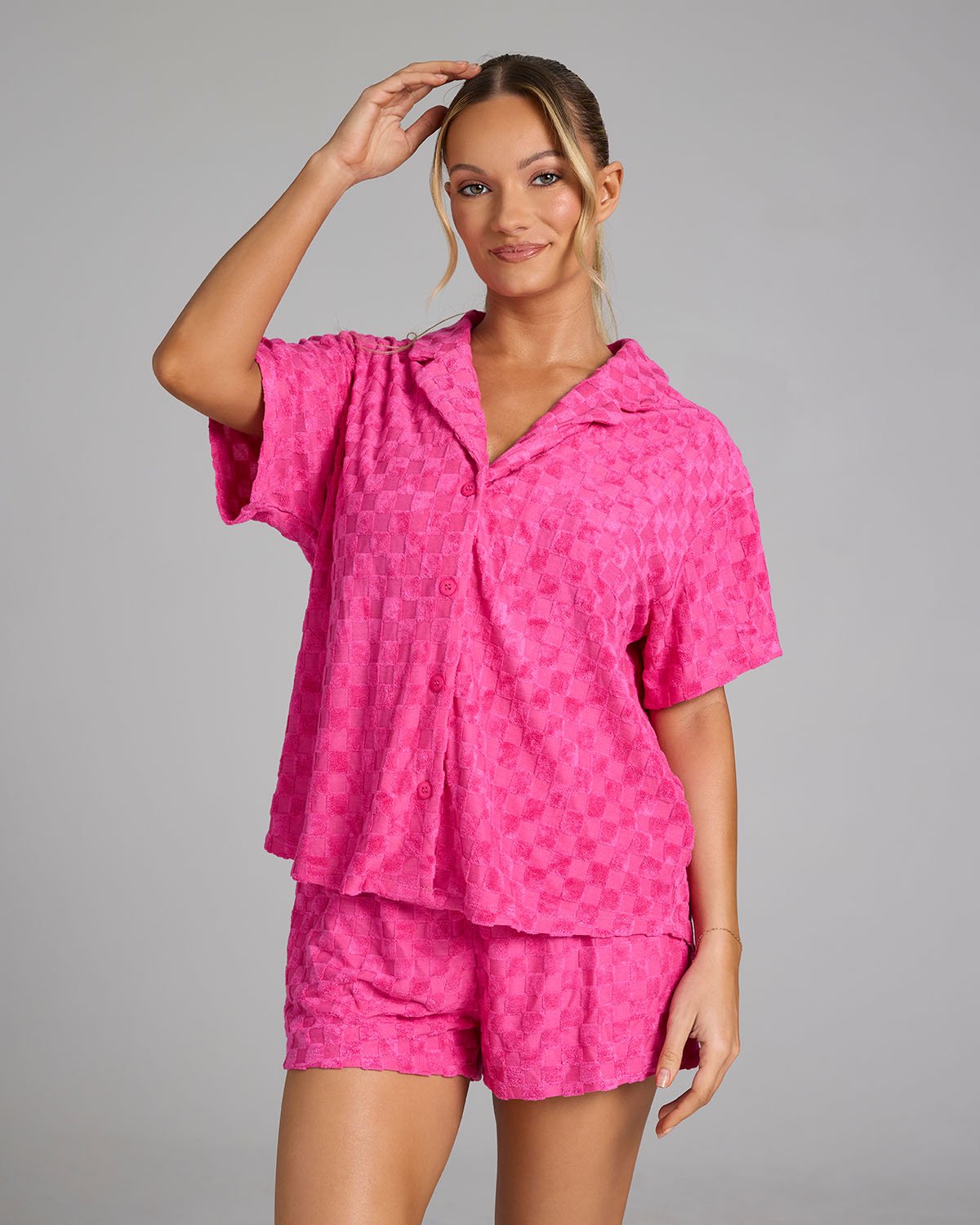 Introducing the Pink Rosa Button Up and Shorts Set, a stylish and versatile ensemble that will elevate your summer fashion game. This two-piece set features a button-down shirt and matching shorts, perfect for those sunny days or vacation getaways. Embrace the playful and feminine vibes of the Pink Rosa set and make a bold fashion statement wherever you go. Get ready to turn heads and feel confident in this trendy and chic outfit.