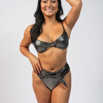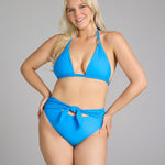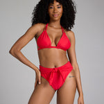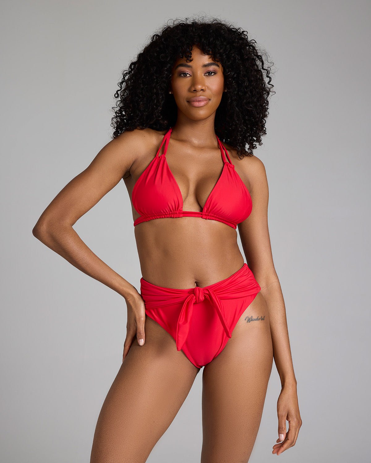 You asked, we created it! The Ruthie Bottom is a high rise, medium to mostly full coverage bottom with a large front knot tie. Rear ruching to bring flare to a bottom made for any beach or pool day.