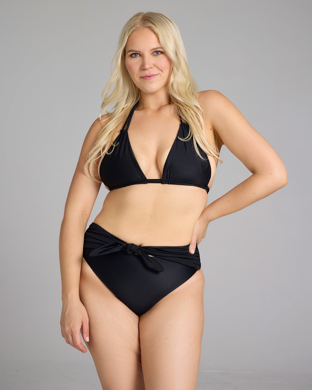 The Ruthie Top is a new classic. A triangle top with two strings of spaghetti around the neck and midline, this takes triangle top support to a new level. Thick spaghetti elevate design, and also keep your bust comfortable. The Ruthie Top also has a thicker underbust scrunch to keep everything exactly where you need it.