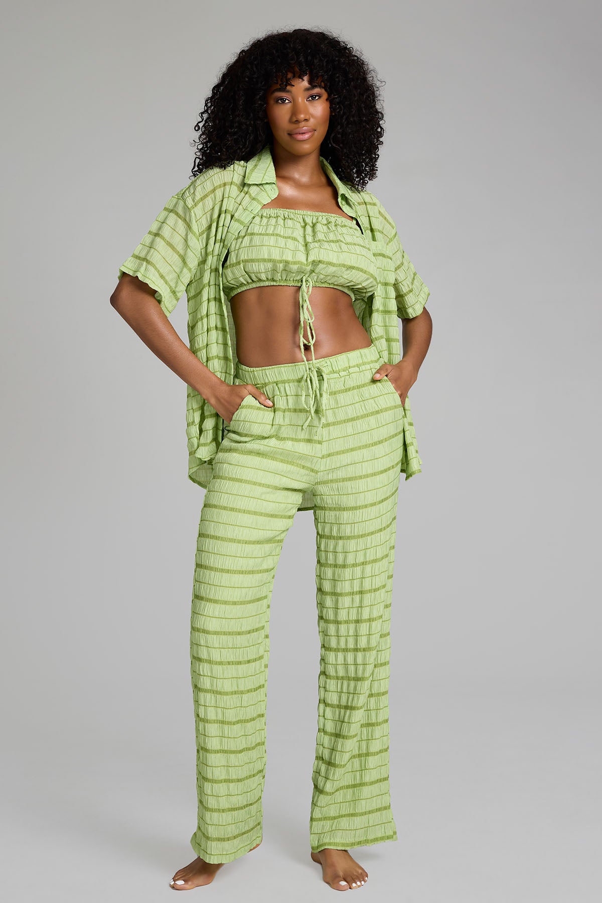 Introducing the Zelda Pants, These light green and airy pants are the perfect cover-up for your beach or pool days. Embrace the Zelda vibes and make a stylish statement wherever you go.